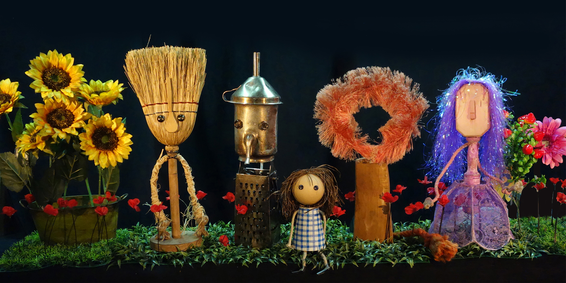 Escobas, fregonas, cacharros, utensilios de cocina y objetos diversos dan vida a esta divertida y sugerente versión del Mago de Oz.